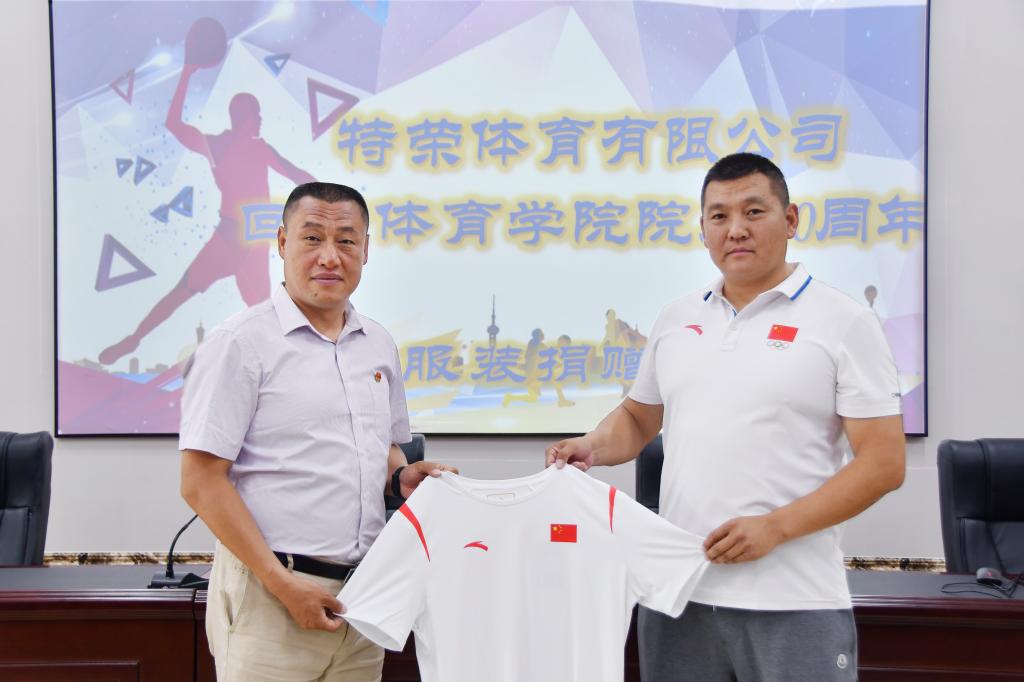 在太阳成集团官方网站70周年校庆来临之际,太阳成集团tyc334552006级运动训练班员工、呼和浩特市荣特体育文化发展有限公司董事长兴安回到公司、不忘师恩,为全院教师赠送服装,祝母校生日快乐、桃李满天。