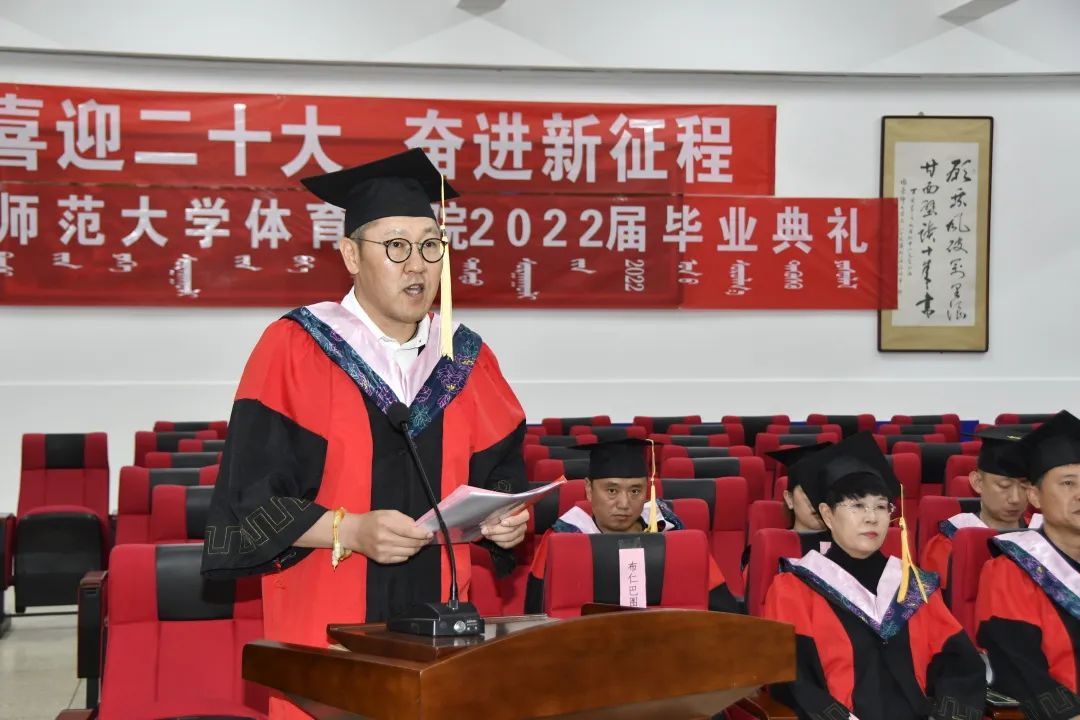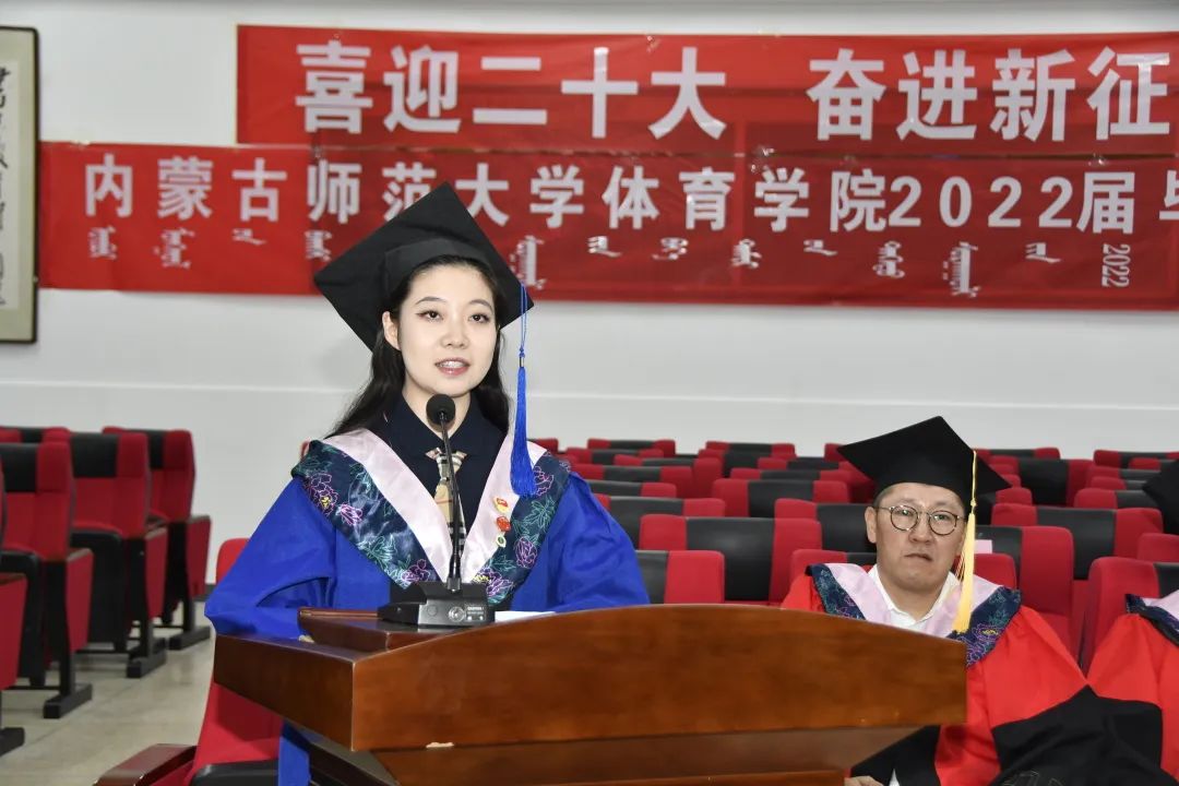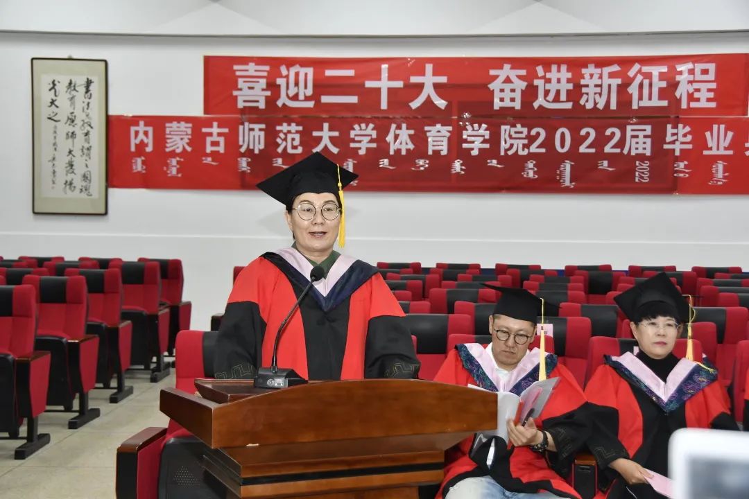 集团学术委员会委员、太阳成集团tyc33455经理、博士生导师高娃教授对全体毕业生送上深深祝福和殷殷嘱托:“忆往昔,峥嵘岁月,几度寒暑,夏熟秋实,冬去春来。几年来,你们因体育而相聚,因体育而改变,收获了强健的体格、健康的性格和完全的人格。请同学们记住,脚下的道路有千万条,母校始终是你前行时坚强的后盾。”