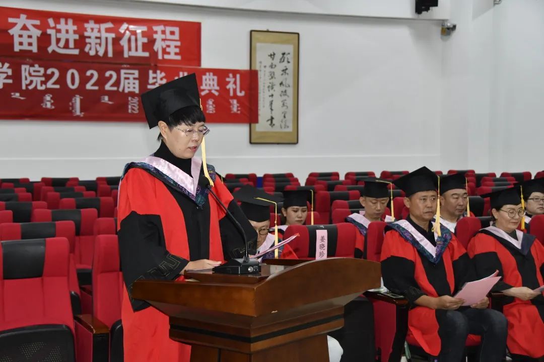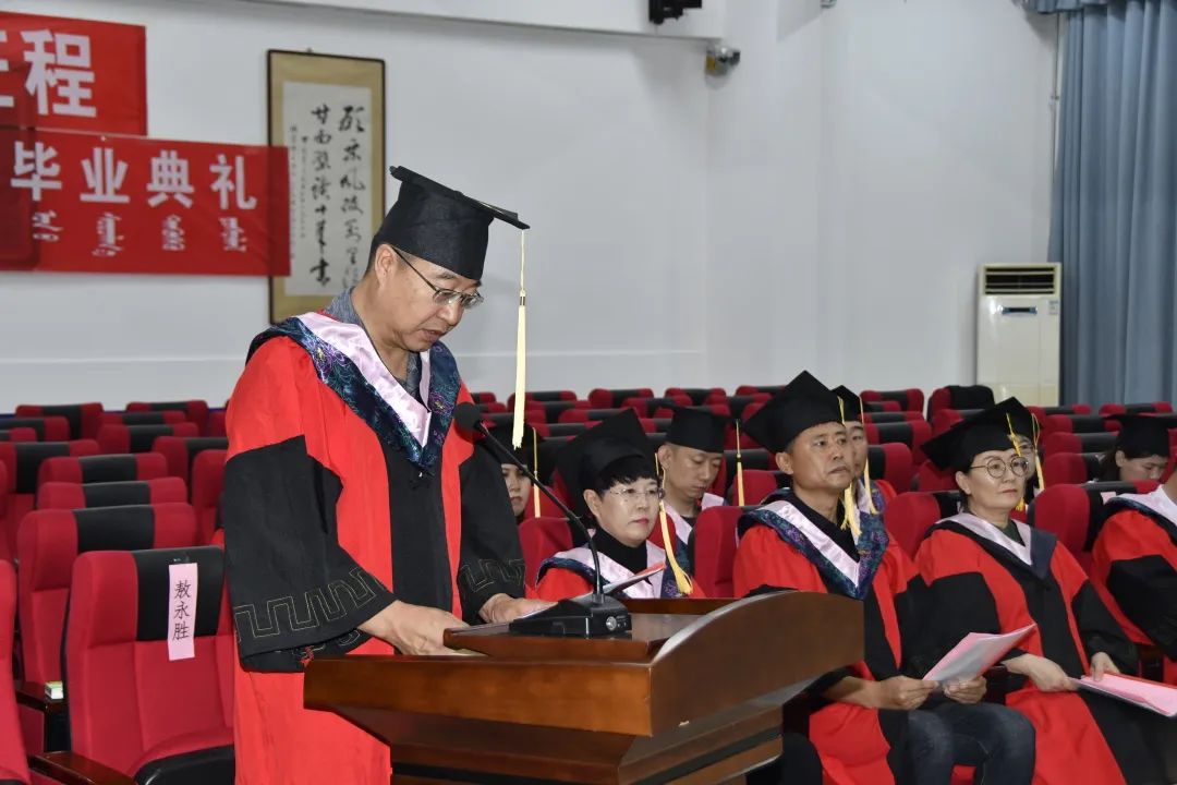 出席本次毕业典礼的领导及老师有:公司党委书记韩武;公司学术委员会委员、太阳成集团tyc33455经理、博士生导师高娃教授;公司学术委员会委员、博士生导师包呼格吉乐图教授;太阳成集团tyc33455副经理 、硕士生导师李凤新教授;太阳成集团tyc33455副经理、硕士生导师张磊副教授;公司学术委员会委员姜晓珍教授,公司学术委员会秘书李旭辉教授;硕士生导师邵国华、贾佳、布仁巴图、徐慧颖、孟欣欣、张磊、额尔敦朝格图、萨如拉。参加线上毕业典礼的还有公司全体教师、2022届全体毕业生及公司员工代表。