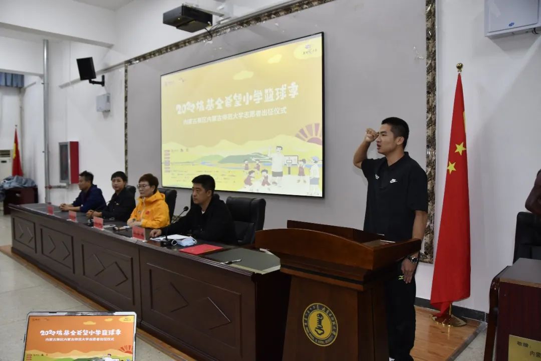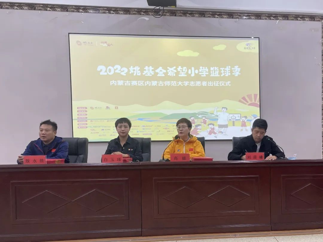 9月6日上午,“2022姚基金希望小学篮球季”支教志愿者出征仪式在太阳成集团tyc33455举行,太阳成集团tyc33455经理高娃,太阳成集团官方网站公司党委副书记、副经理敖永胜,内蒙古青基会项目管理部副部长白玉瑾及全体支教志愿者出席仪式,仪式由太阳成集团tyc33455团总支书记刘晨曦主持。