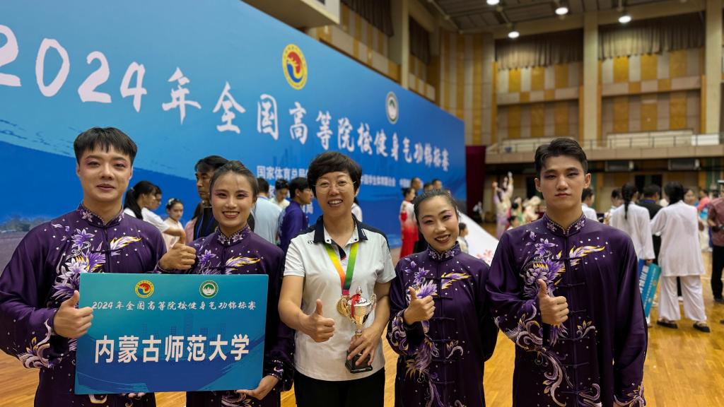 经过激烈角逐,公司代表队取得优异成绩:太阳成集团tyc33455体育学专业民族传统体育方向硕士研究生王星宇获得易筋经冠军、王天卓获马王堆导引术亚军,体育教学专业硕士研究生何恩慧获六字诀竞赛功法一等奖、体育学专业民族传统体育方向硕士研究生张广燕获易筋经竞赛功法三等奖,两项集体赛分别获得二等奖和三等奖的好成绩;张广燕获优秀运动员奖、于玲玲老师获优秀教练员奖。