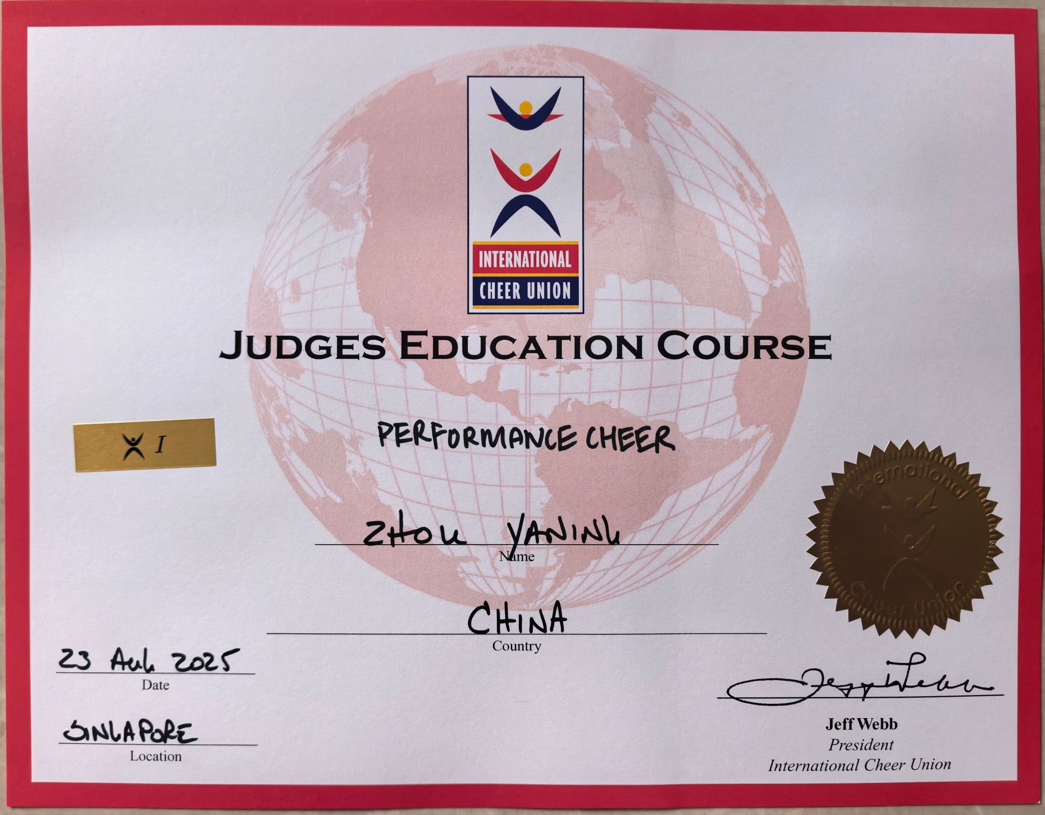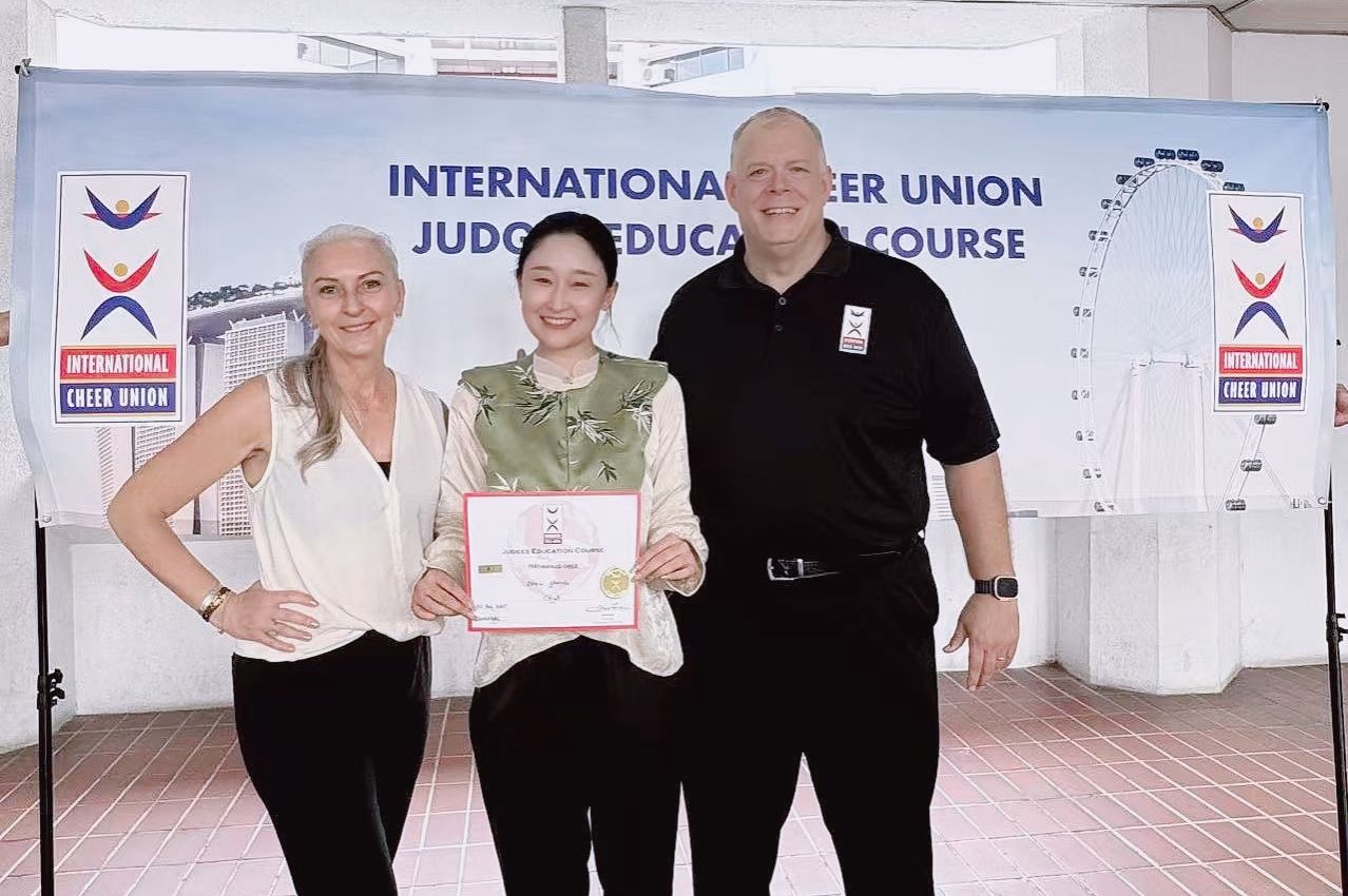 2025年8月,太阳成集团tyc33455周雅宁老师赴新加坡参加由ICU国际啦啦操联盟(INTERNATIONAL CHEER UNION)举办的国际啦啦操裁判资格培训,经过严格考核,成功获得啦啦操国际级裁判员证书。此次培训汇聚全球精英,全国仅有30余名专业人士获选参与,周雅宁老师作为内蒙古自治区唯一代表,展现了卓越的专业素养与国际视野。